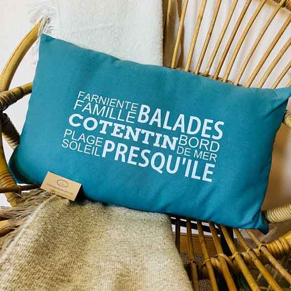 Découvrez notre coussin personnalisé Destination Cotentin. Avec sa personnalisation unique, il sera un élément parfait de décoration tout en vous rappelant vos souvenirs de vacances, d’enfance ou encore de famille. Idéal comme cadeau à offrir ou s’offrir.