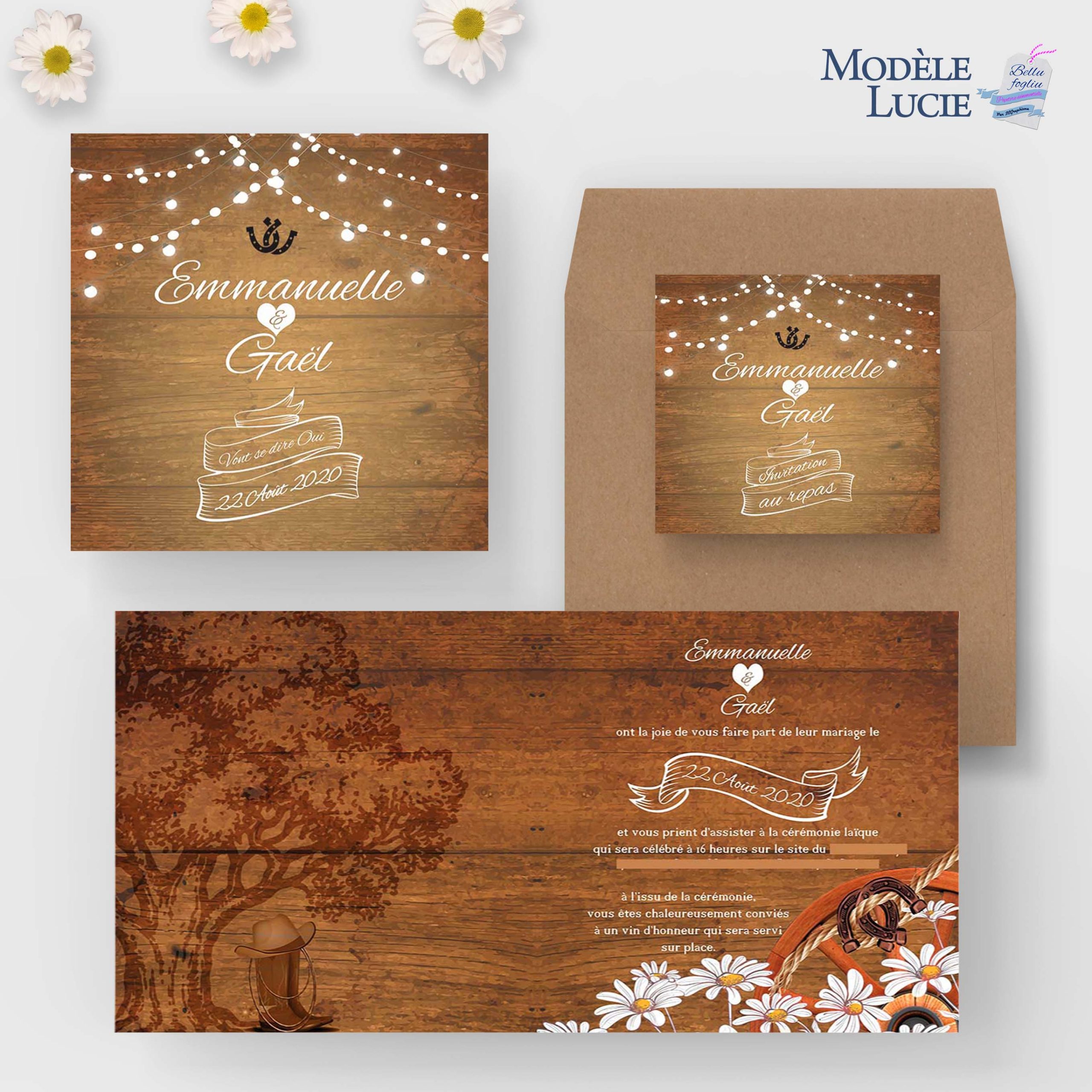 Laissez-vous charmer par l’élégance rustique du faire-part de mariage modèle Lucie.