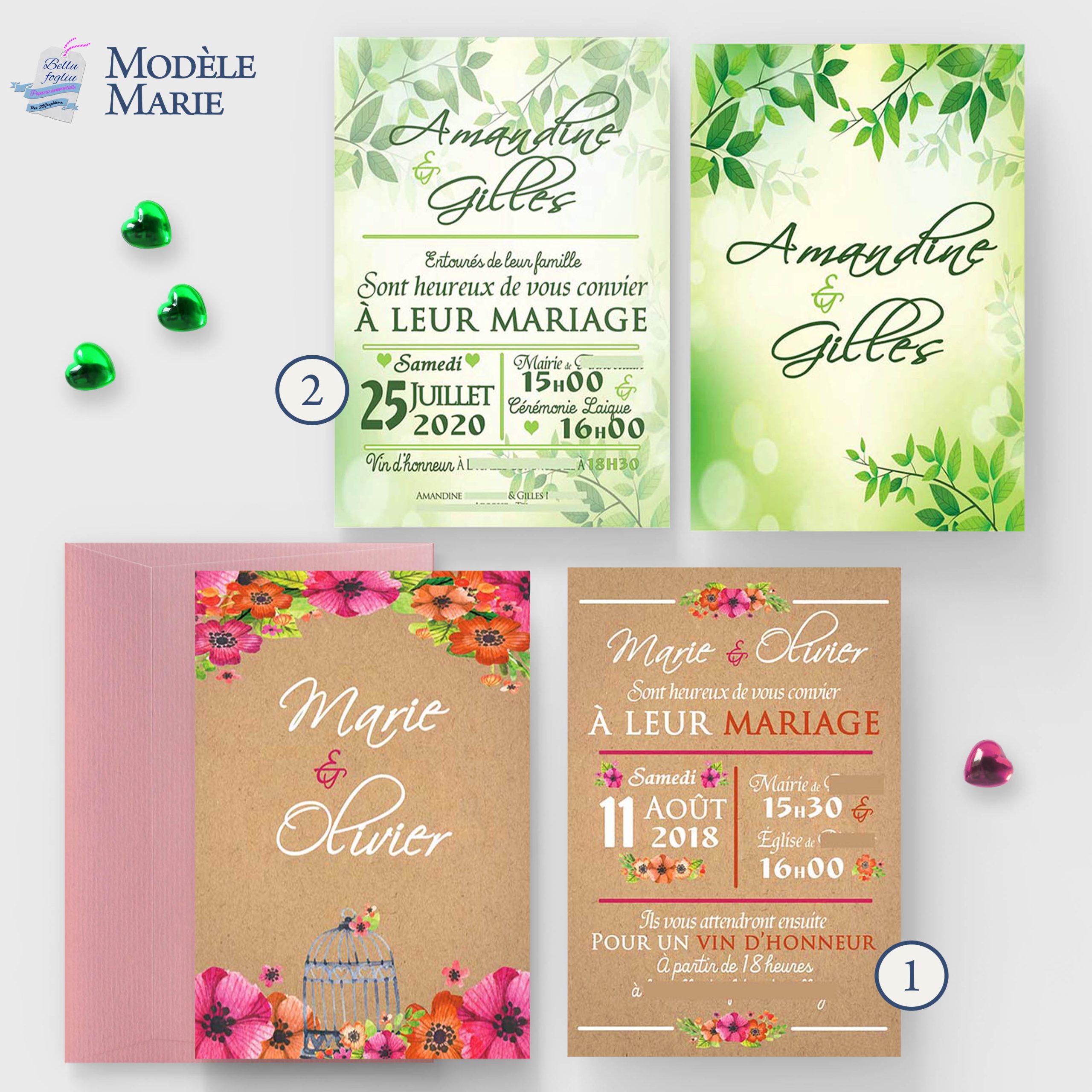 Faire-part de mariage modèle Marie