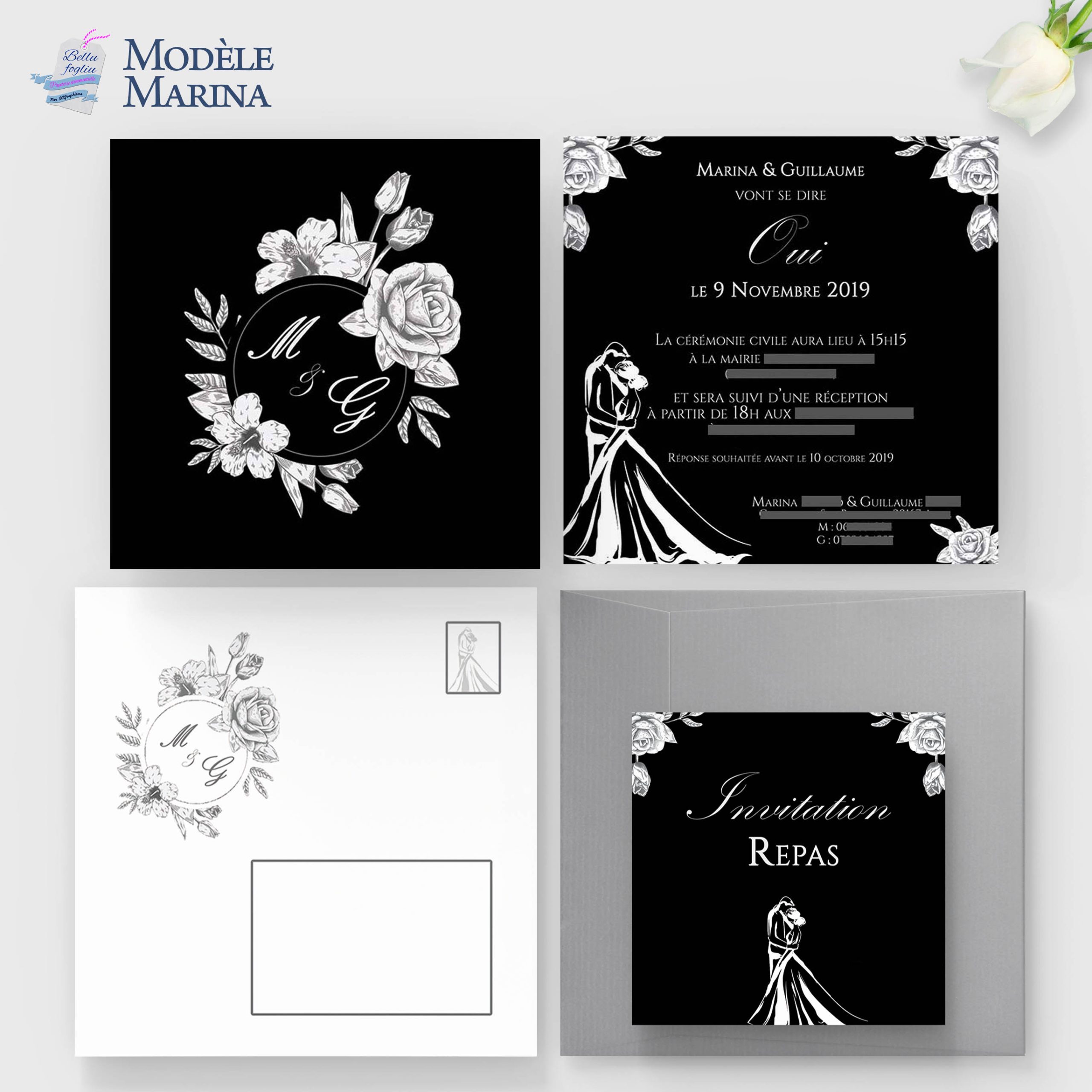 Plongez dans l’élégance intemporelle avec le faire-part de mariage modèle Marina.