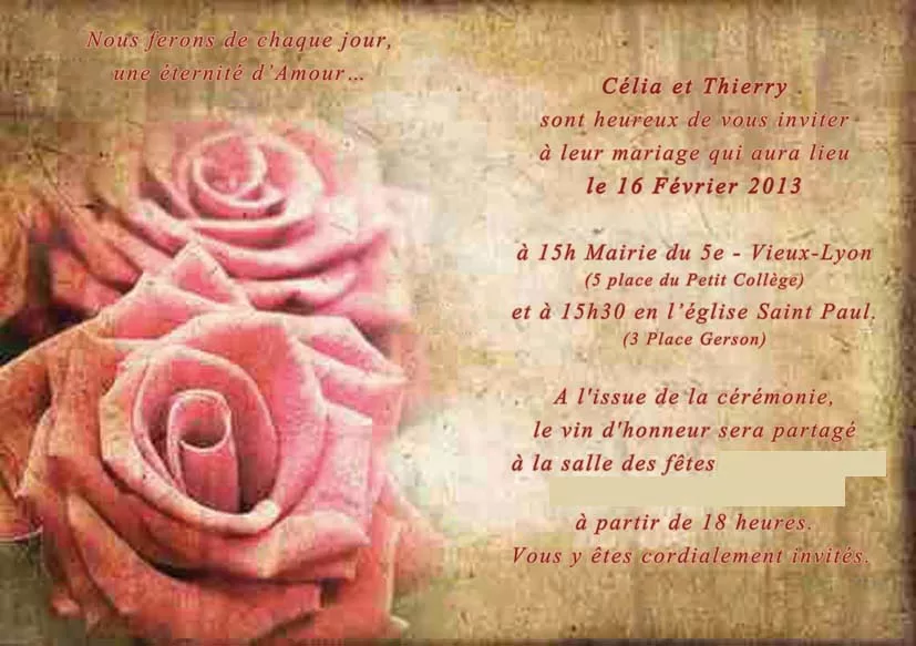 Un petit côté vintage pour ce faire-part avec son couple et sa rose ancienne.