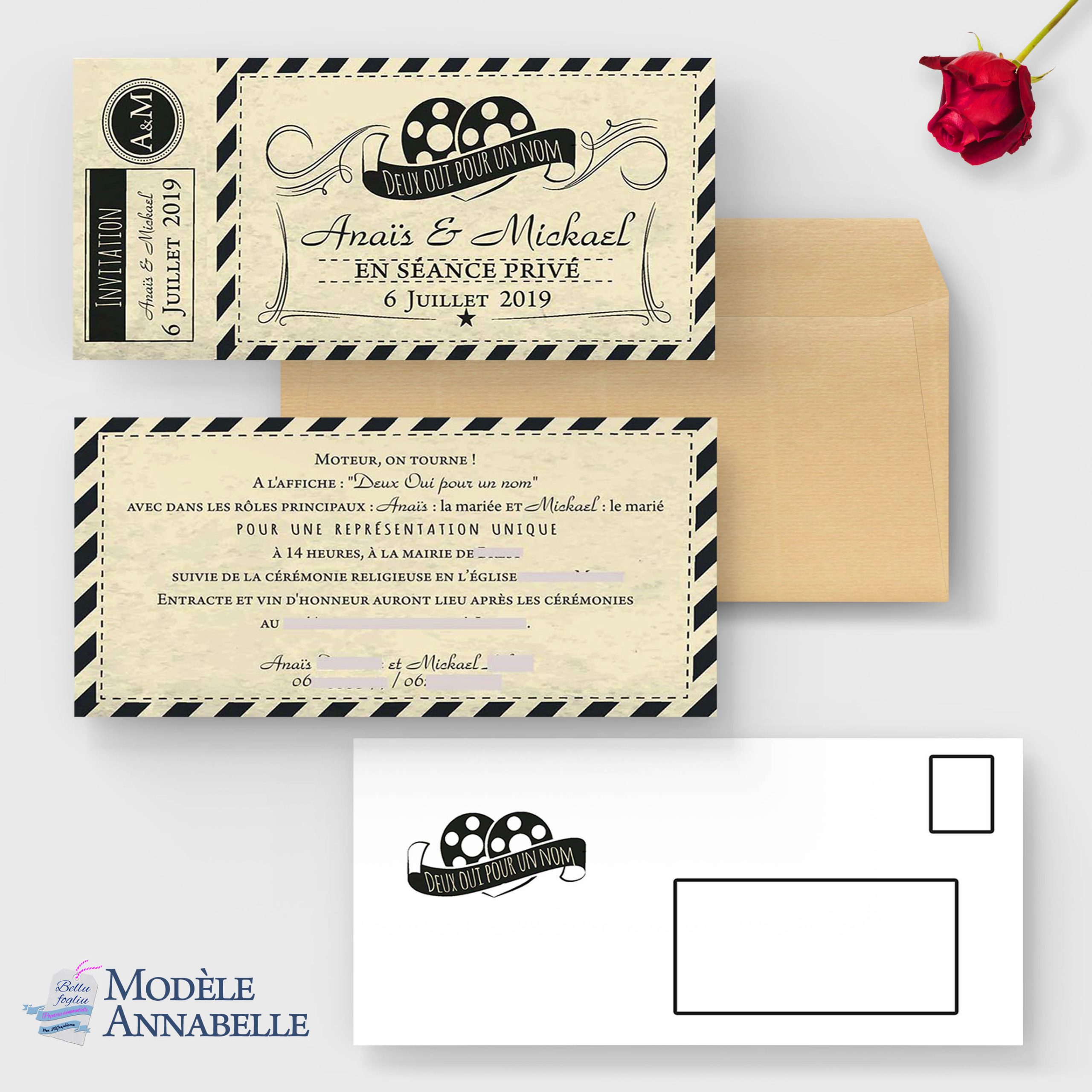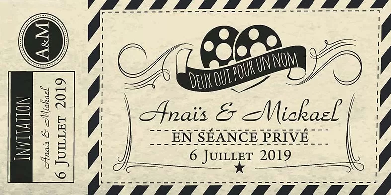 Faire-part de mariage thème cinéma vintage modèle Annabelle