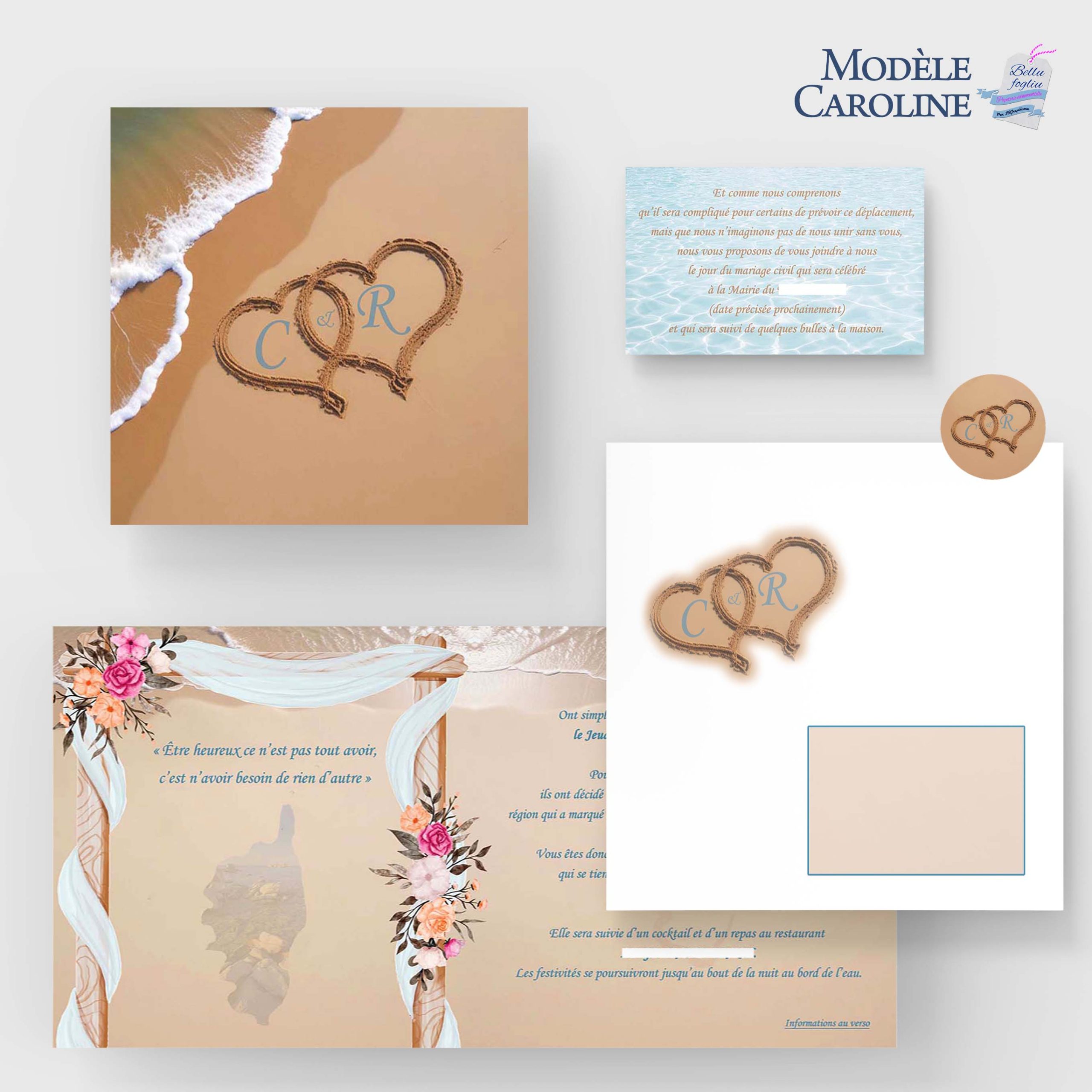 Faire-part de mariage thème cérémonie sur le sable modèle Caroline