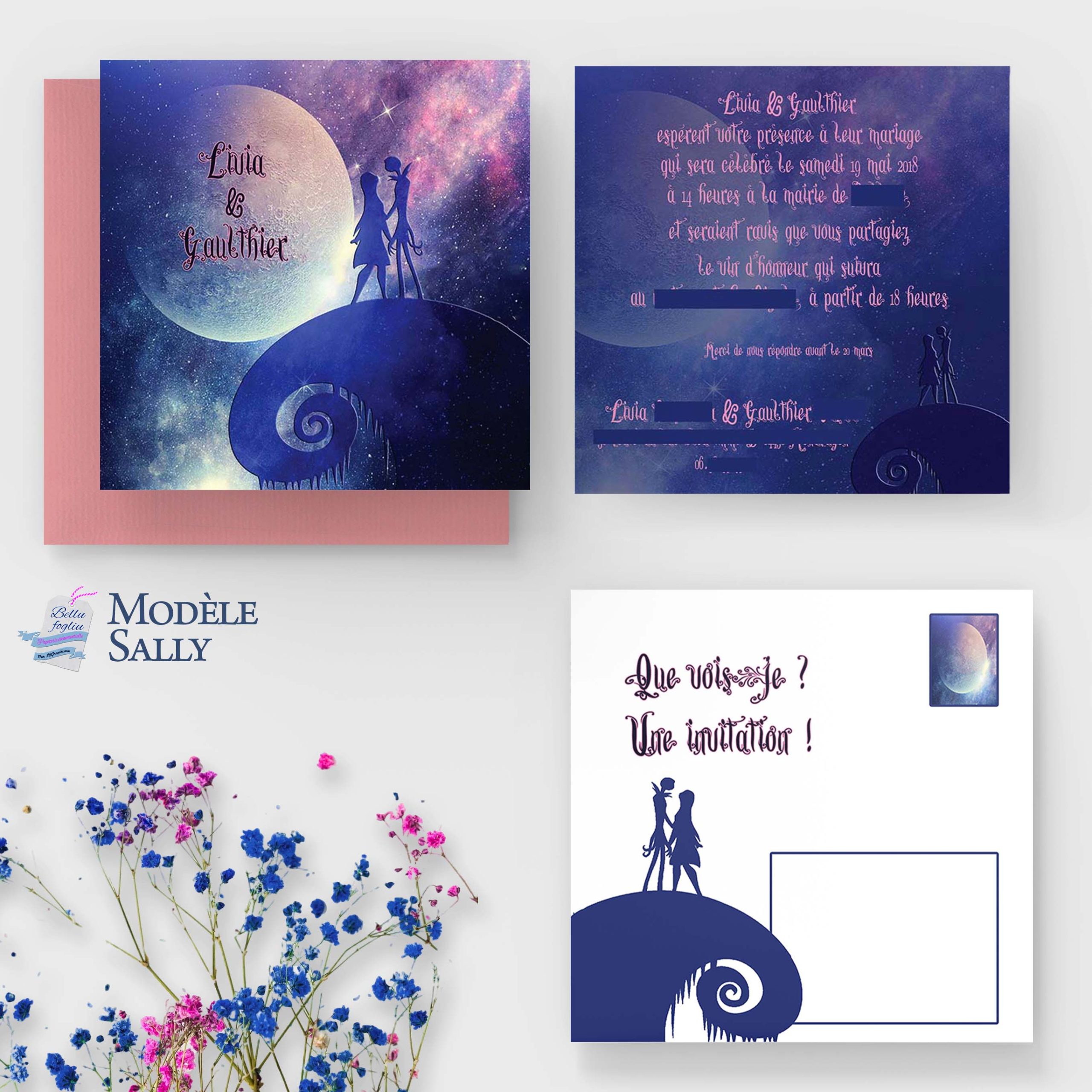 Parfait pour les couples qui rêvent d’une célébration de mariage unique et pleine de fantaisie, ce faire-part promet une journée remplie de mystère et de romance.