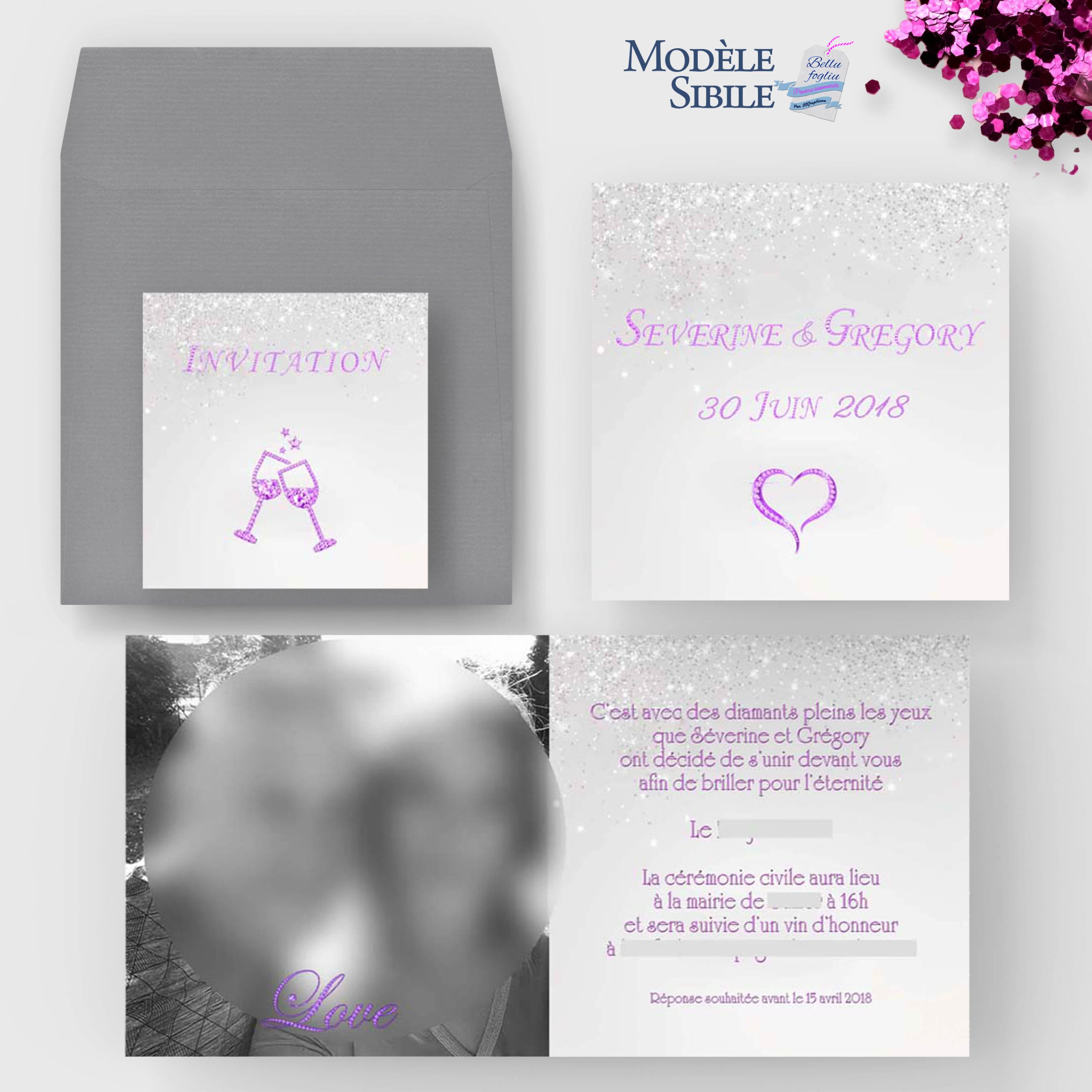 Faites briller votre grand jour avec le faire-part de mariage modèle Sibile, idéal pour ceux qui rêvent d’une touche de glamour et d’éclat.
