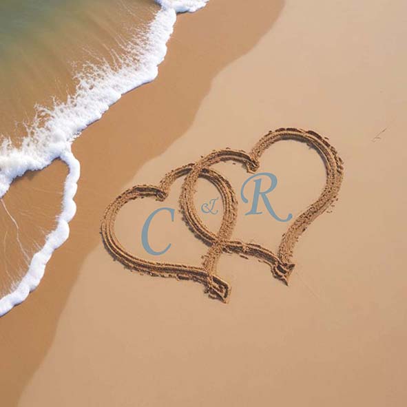 Deux cœurs entrelacés tracés dans le sable fin, caressés par les vagues… un symbole fort, naturel et tendre, pour annoncer votre union avec poésie.Pensé pour les couples qui rêvent d’un mariage sur la plage, d’une cérémonie au bord de la mer ou dans une crique ensoleillée, ce modèle évoque le calme de l’océan, les pieds nus dans le sable et la chaleur des émotions partagées.