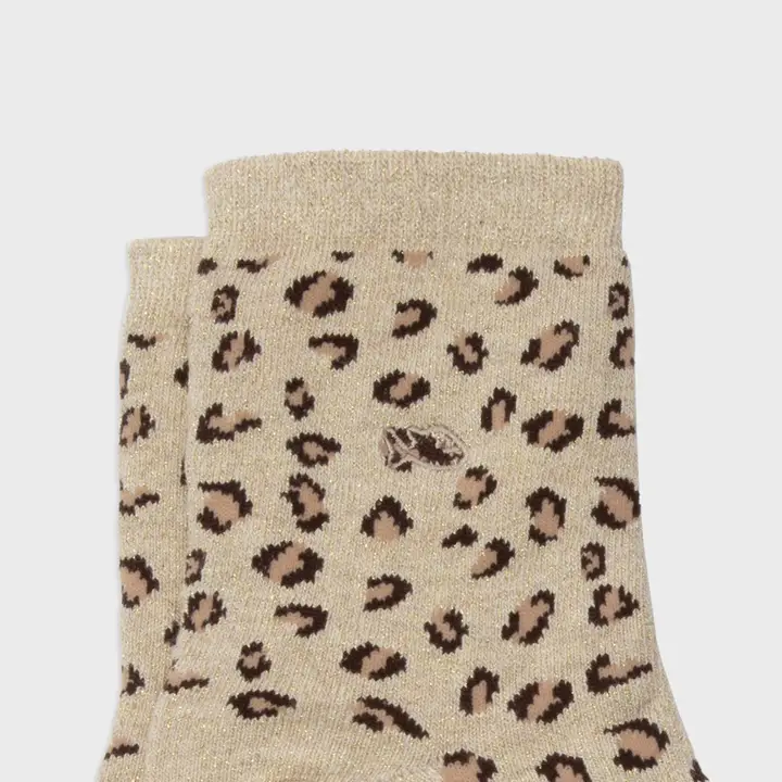 Chaussettes En Coton Peigné Léopard- Beige