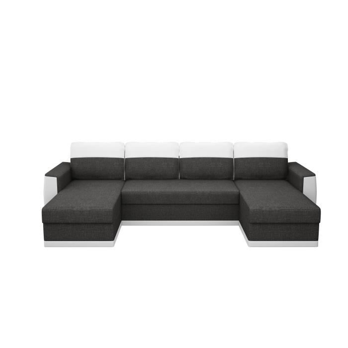 Présentation produit : JAMES Canapé d’angle panoramique convertible 5 places – Simili et tissu Blanc et Anthracite – L 298 x P 142 x H 85 cm