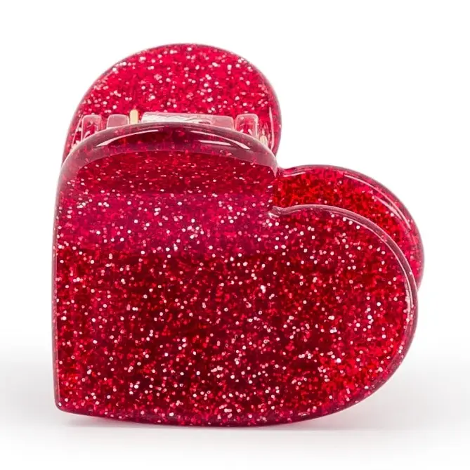 Mini pince coeur glitter rouge