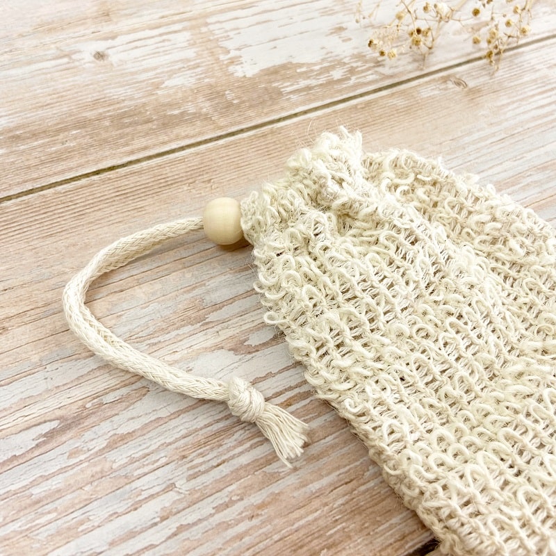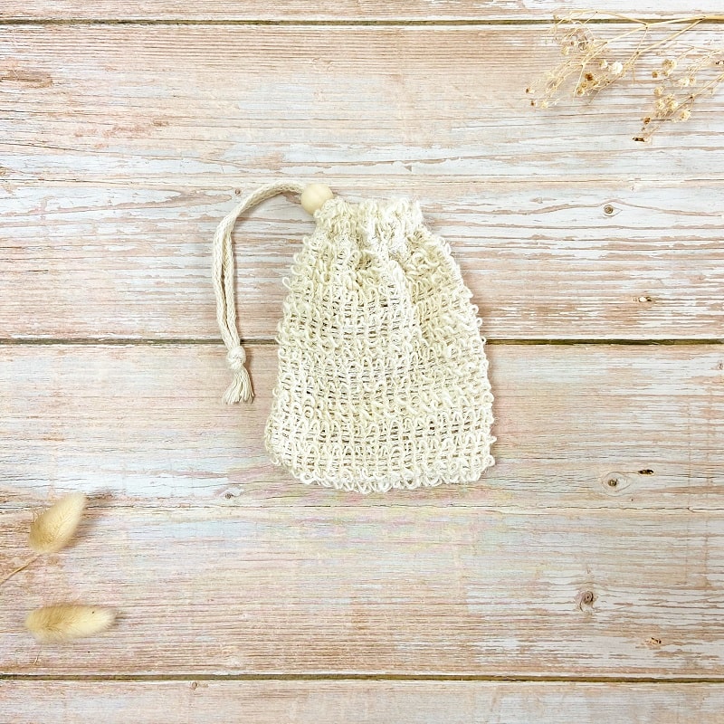 Le Sauve-savon en jute est un outil anti-gaspillage qui permet d’utiliser les chutes de savons et de les faire mousser.