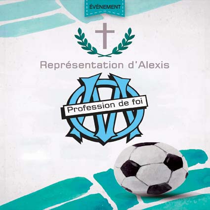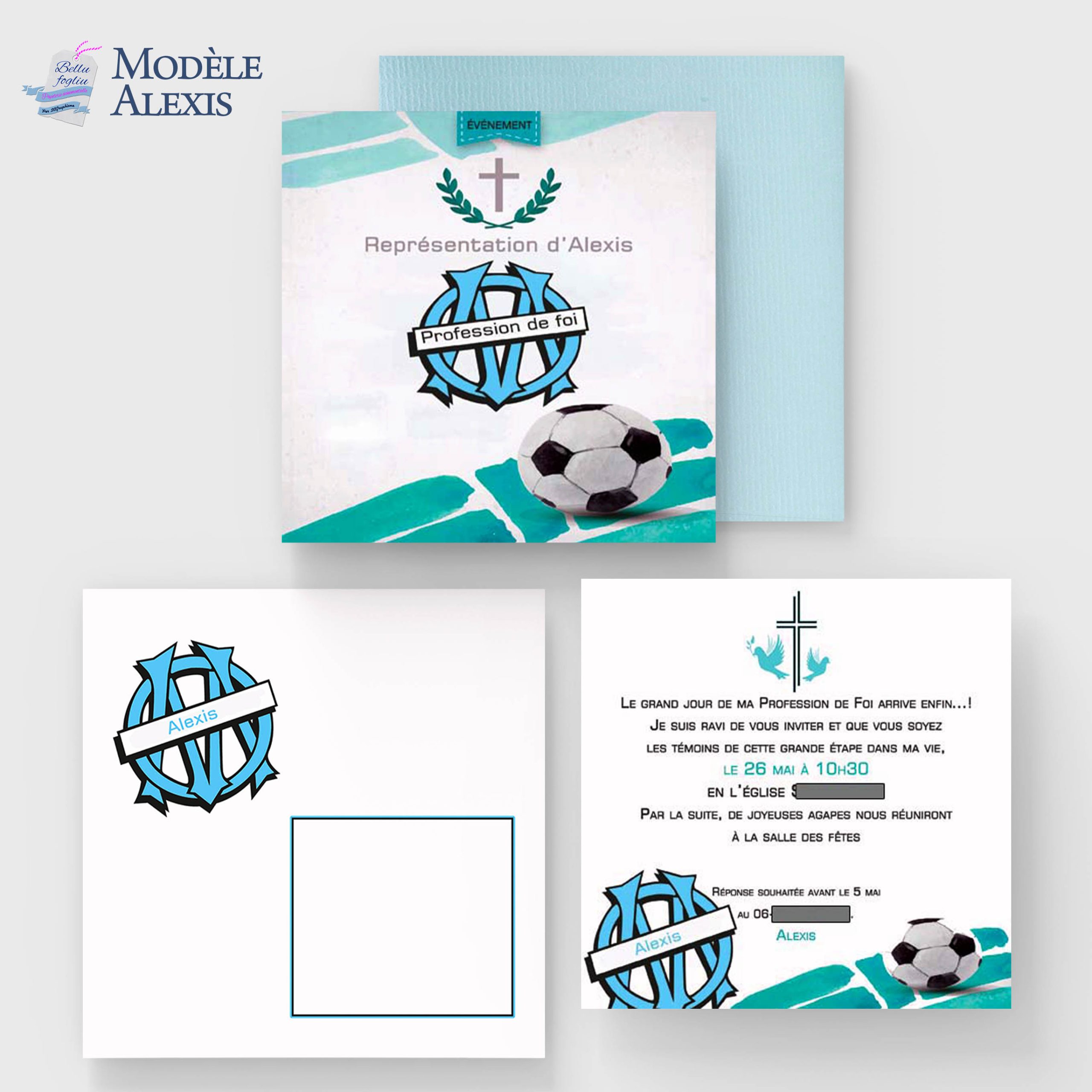 Découvrez notre faire-part de baptême modèle Alexis, spécialement conçu pour les petits supporters de football qui s’apprêtent à recevoir le sacrement du baptême ou à faire leur Profession de Foi.