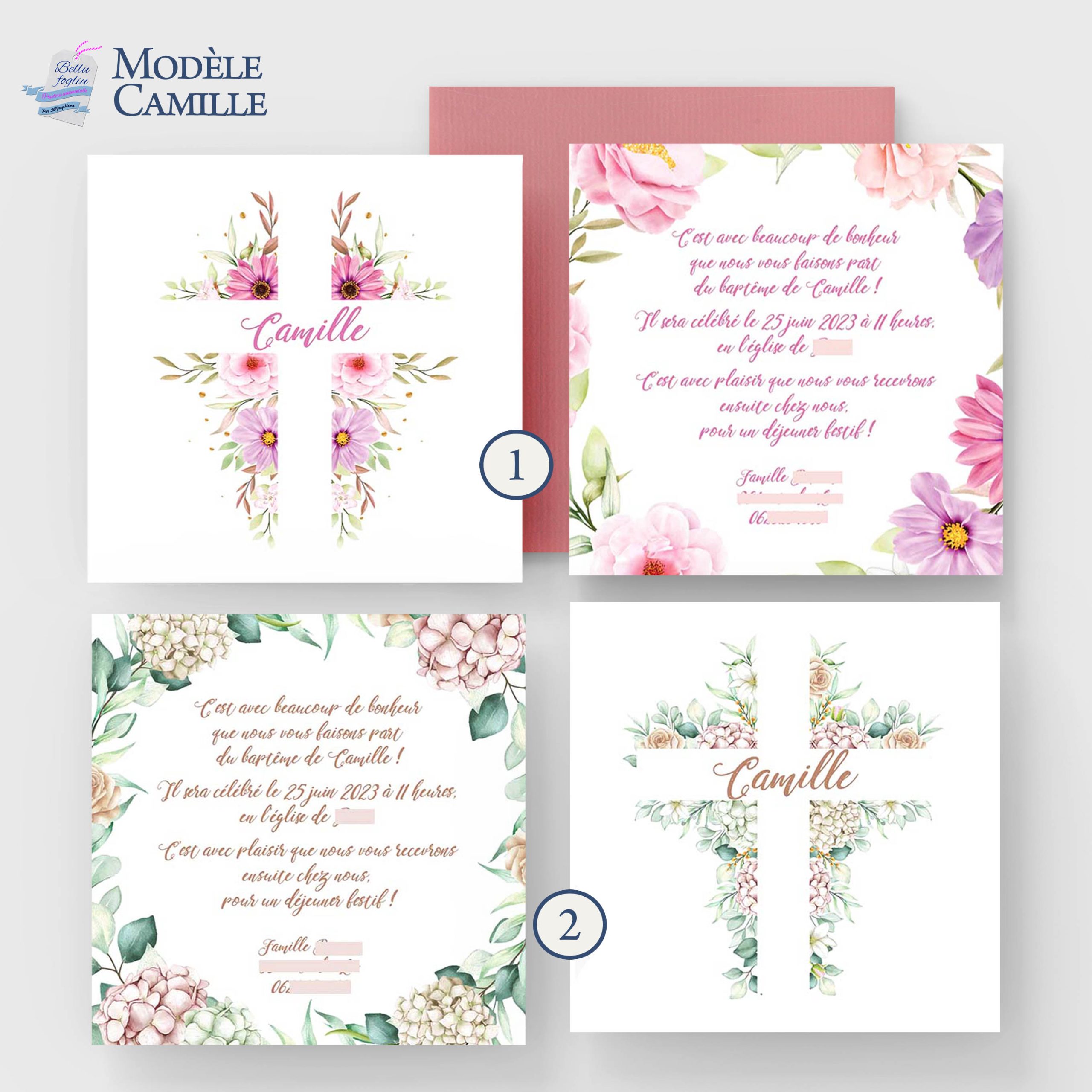 Exprimez l’élégance et la délicatesse avec notre faire-part de baptême modèle Camille.