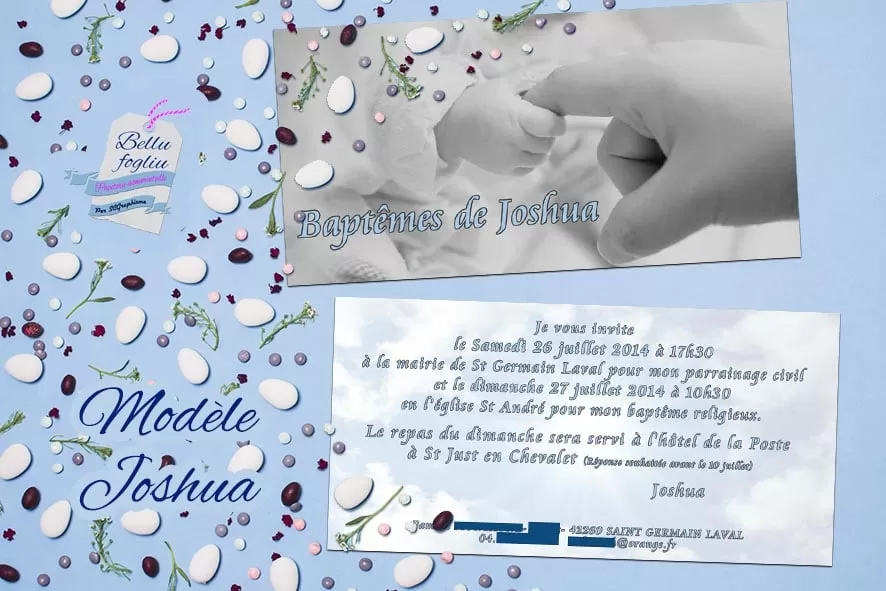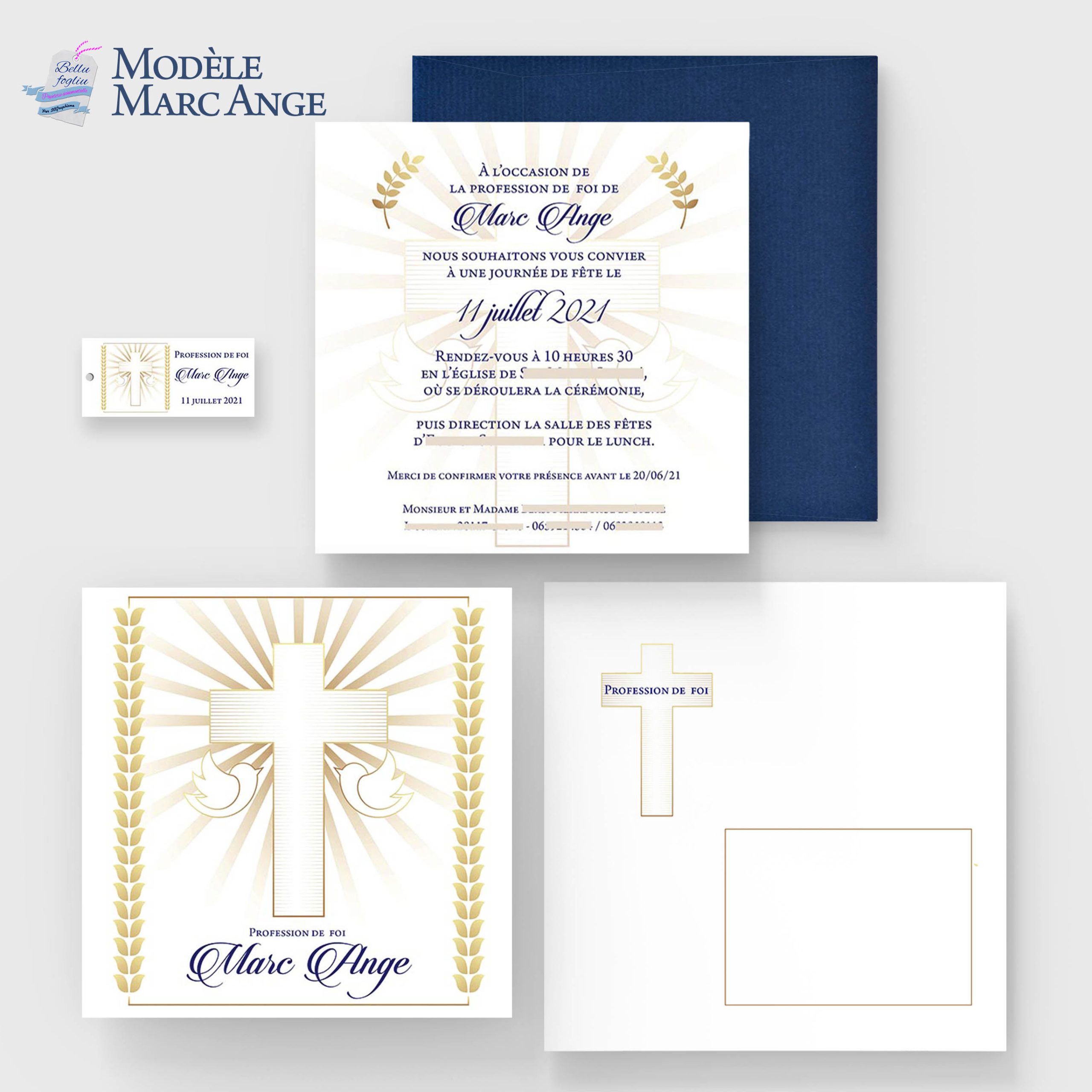 Faire-part de baptême ou profession de foi modèle Marc Ange