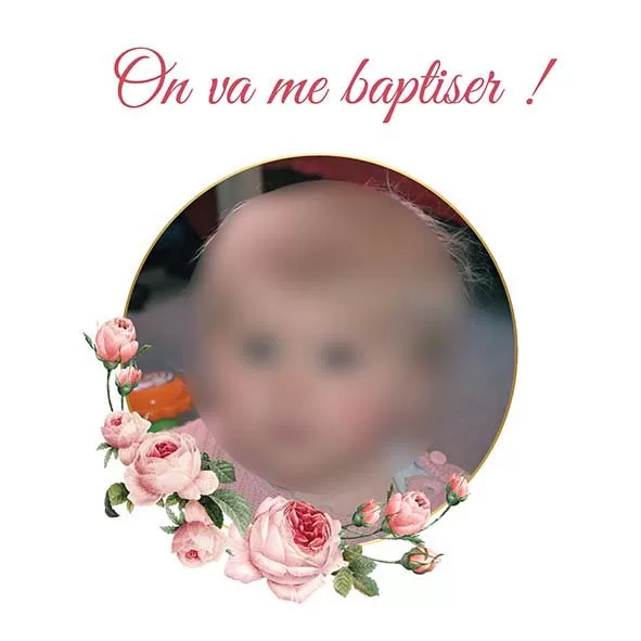 Pour un baptême très girly et floral, la photo de la princesse du jour sera bien entourée par de jolie roses.