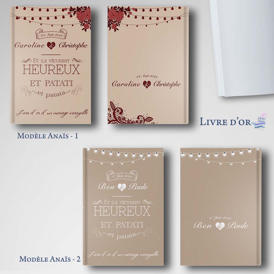 – Modèle Anaïs : pour un livre d’or plus classique pour les thèmes guinguette ou champêtre.