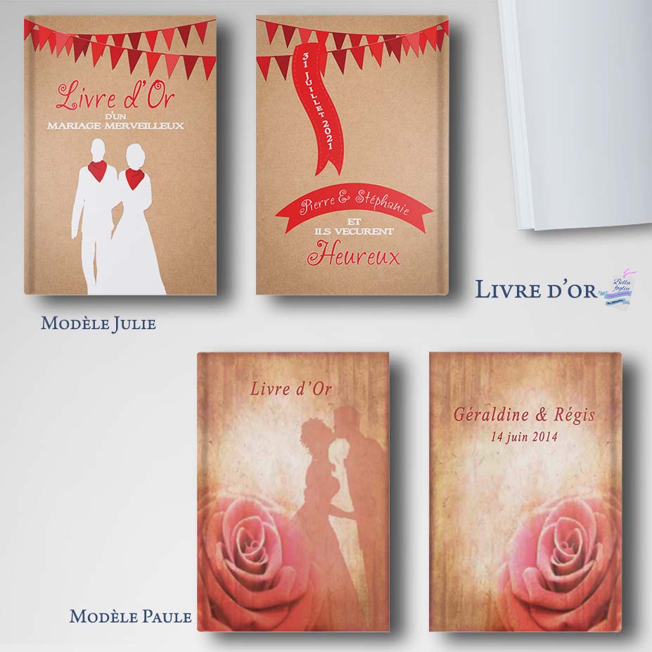 – Modèle Paule : Un petit côté vintage pour ce livre d’or avec son couple et sa rose ancienne.