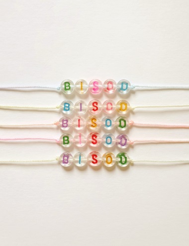 Ce bracelet est composé de perles transparentes avec lettres fluo ; puis d’un cordon multicolore pastel (aléatoire), un bracelet parfait pour l’été aussi bien pour les filles que les garçons !