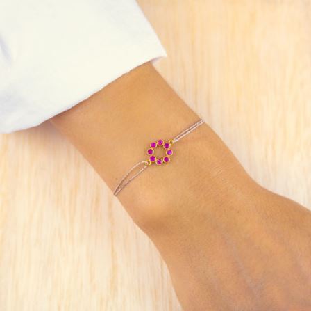 Un bracelet où simplicité et élégance se rencontrent, toujours avec une touche de couleur apportée par les pierres fines, notre petite touche personnelle.