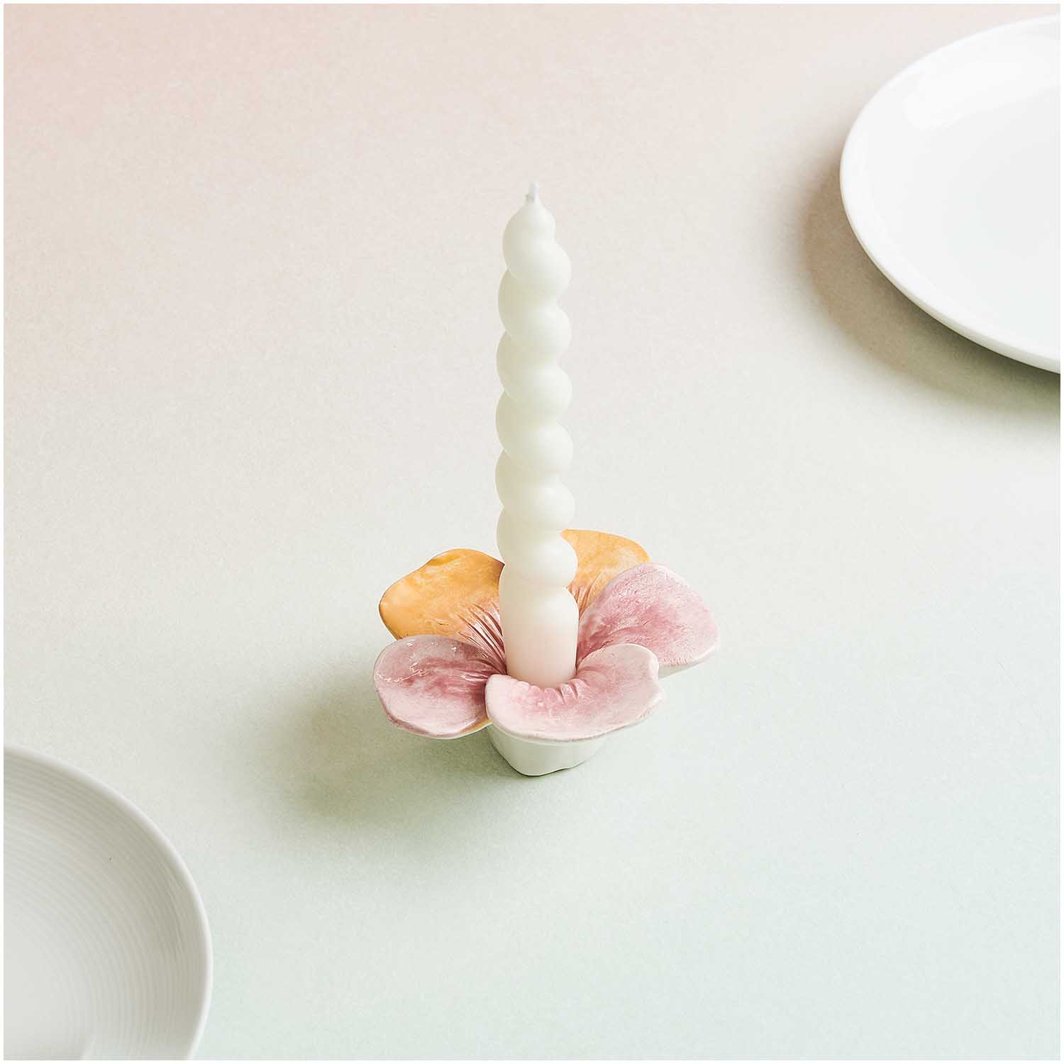 Bougeoir en Céramique Pensée, Rose, 5,5x11x11 cm, pour Bougies Ø 2,4cm