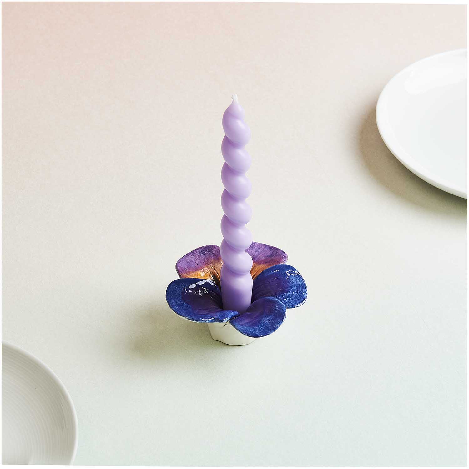 Bougeoir en Céramique Pensée, bleu, 5,5x11x11 cm, pour Bougies Ø 2,4cm