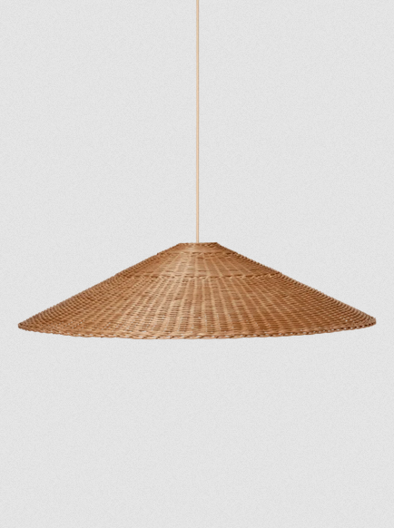 Tressée à la main à partir de rotin naturel, la série Dou célèbre le joli contraste entre les formes géométriques et les qualités organiques et texturées du matériau. Cet abat-jour fournira un éclairage zénithal lumineux tout en laissant de petits aperçus d’éclairage à travers l’abat-jour lui-même.