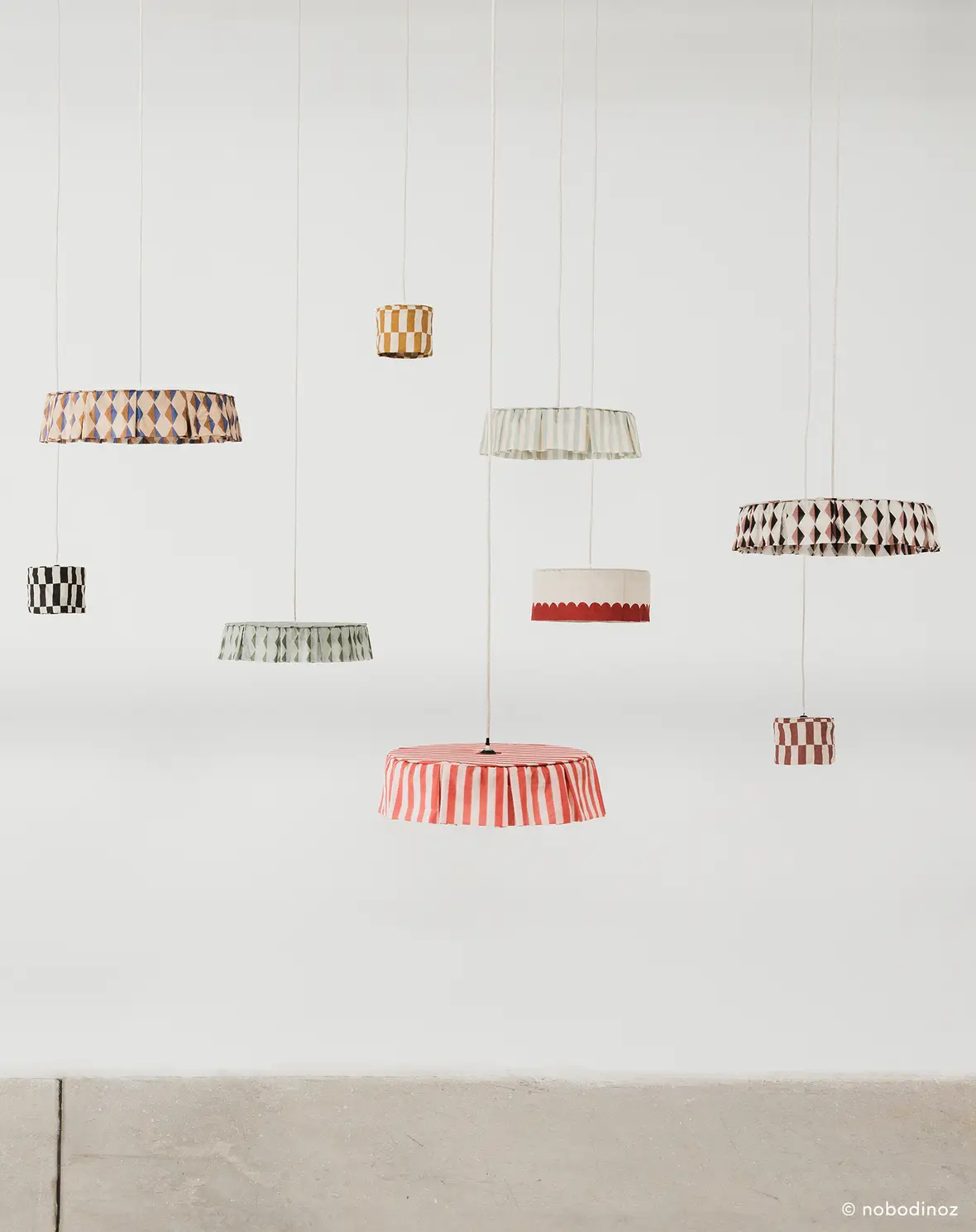 Les abats jour PLAY 100% laine s’inspire des vinyles et mixtapes colorés des années 80. Combinez-le avec un cordon vibrant, ou pourquoi ne pas miser sur l’or ?
