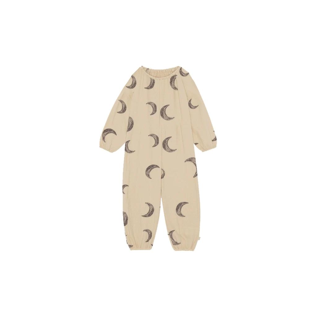Grenouillère souple en , avec un soupçon d’élasthanne. Conçu avec un col à volants élastique à deux niveaux et des poignets à volants élastiques. Avec boutons-pression à l’entrejambe et les jambes pour un enfilage facile.
